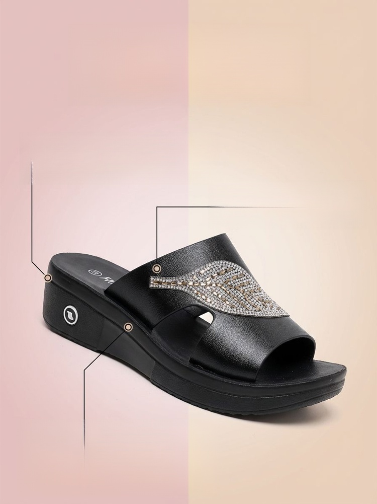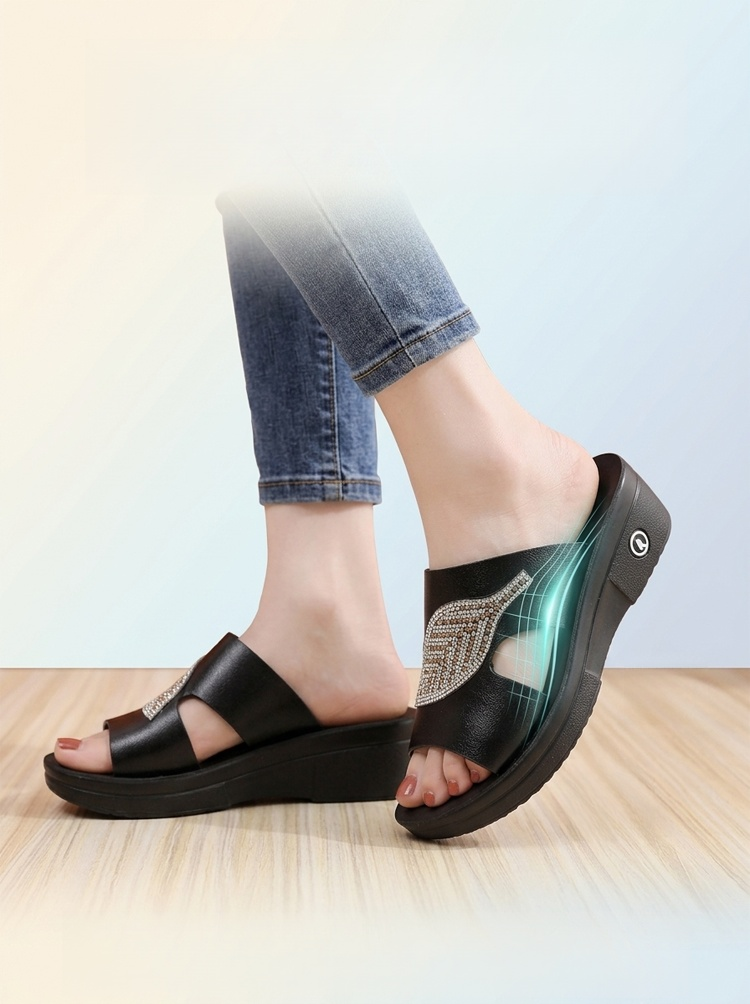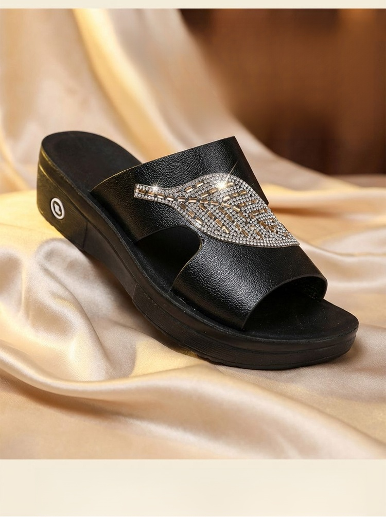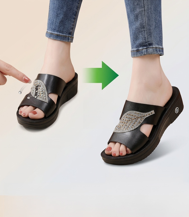 【軟底增高5CM】閃鑽樹葉小姐拖鞋
